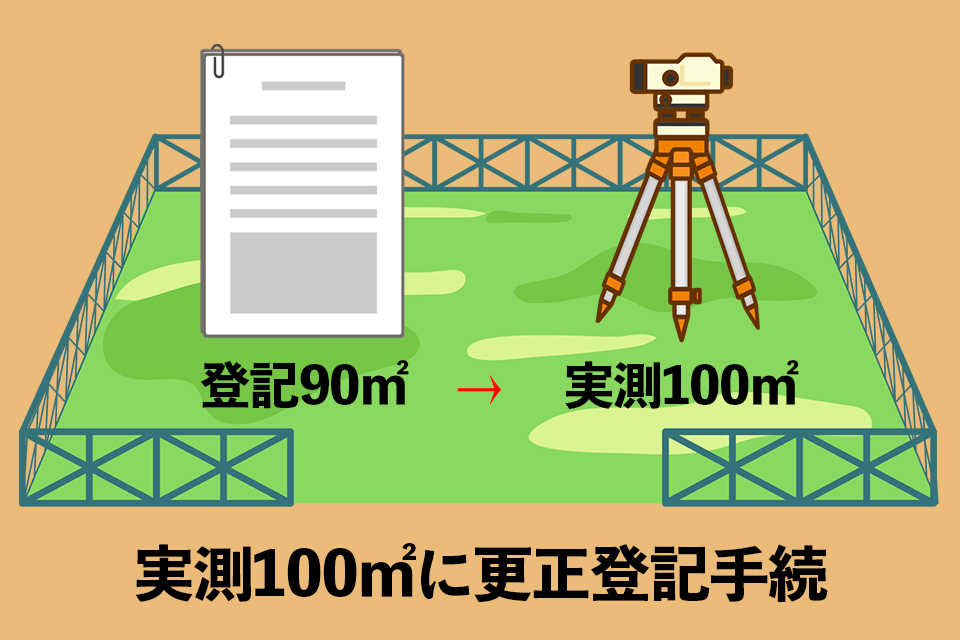 登記された面積を現況の面積に更正登記する手続き